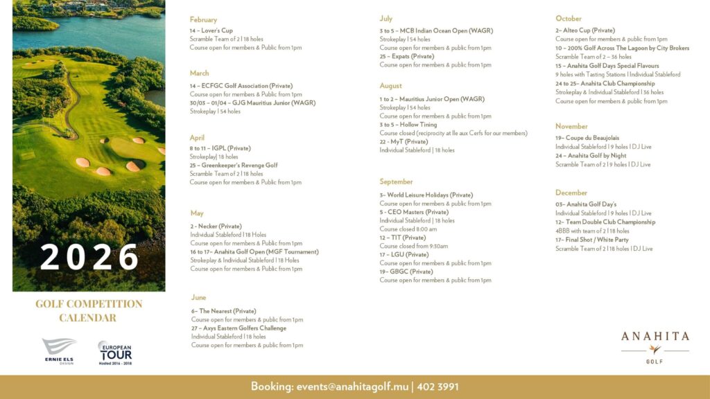Mauritius, for its part, naturally stands out as a prime destination for international golf: a unique setting where breathtaking landscapes and a favourable climate are part of the golfing experience.